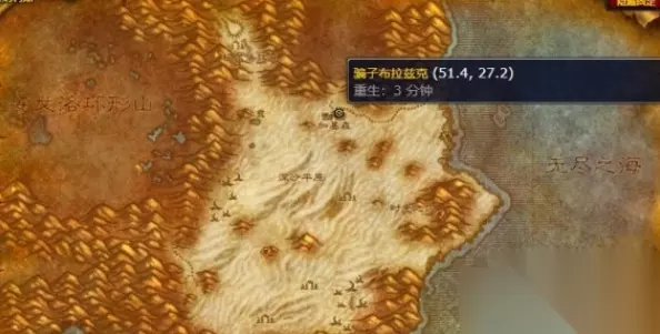 最后,还有一个 NPC 名叫骗子布拉扎克,要找到他,玩家需要前往塔纳利斯。塔纳利斯是一片充满挑战与机遇的土地,玩家需准确地找到坐标为 51.4,27.2的位置。在这里,玩家就能与骗子布拉扎克相遇。和前面的 NPC一样,通过花费竞技场点数,玩家也能从他这里获得无情角斗士战袍。这三个途径为玩家提供了不同的选择,让玩家可以根据自己的游戏进程和喜好,去努力获取这件象征着荣耀与实力的无情角斗士战袍。