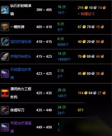 wlk工程300-450冲级攻略为玩家们带来了快速升级所需要制作的道具,将材料准备齐全后,就可以开始动手制作了。接下来就来看看wlk工程300-450冲级攻略,元素炸药粉、精密奥金转换器、修理机器人74A型等物品都可以逐级制造。