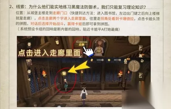 拼图线索: “为什么他们能实地练习黑魔法防御术,我们只能复习理论知识?” 具体位置: 城堡主楼一直直走到走廊进入走廊与卡珊德拉战斗