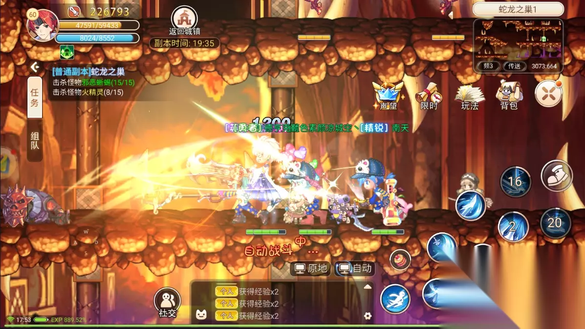 前期冲级 很多人都看到了有许多玩家第一天没有卡在29,而是冲到了31级或者是35级,这个是通过压主线任务外加打怪所突破的,大家都知道每天获取的经验是有上限的,达到上限之后经验就会变成+1,但是主线任务是不算在每天获取的额外经验里面,所谓第一天突破29级以上就是前期能压就把主线任务都压住不做,等到第一天靠打怪经验打满今天的经验之后在做主线任务,但是这样是不够的,距离30级还是有一点差距的这个时候最好是找经验队伍,找低等级的怪一触即死的那种,打死一只就会+1点,五个人站好位置经验就会一只+1+1最后达到30级之后做完主线大概就可以到了35级