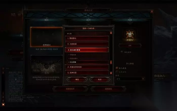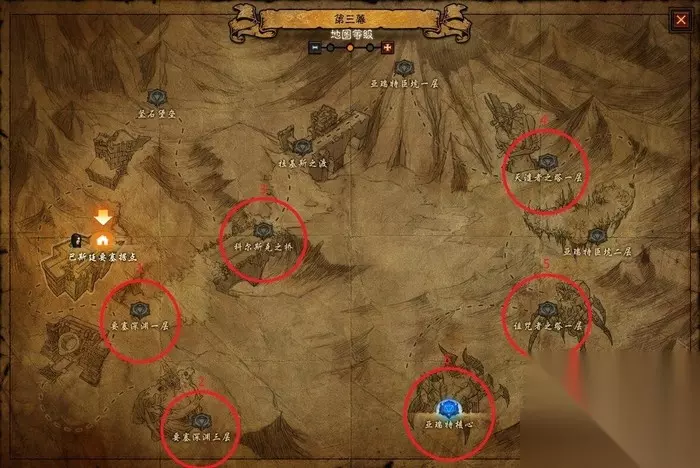 4.小秘境 挑战小秘境是获取装备的最先选择。小秘境的难度根据自身调节分为1-13级,难度等级越高装备掉落率越高,普通怪物、精英怪物和BOSS均有几率掉落。在小秘境中主要收集套装跟传说装备散件,同时可以获取用于挑战大秘境的钥匙。 5.大秘境 挑战不同等级的大秘境可以快速收集传说装备和传说套装,大秘境的等级越高,出现远古传奇物品和远古传奇套装的概率就越大。通过挑战更高等级的大秘境还可以在天梯上获得更高的排名。挑战大秘境成功后还可以获得血岩碎片,使用血岩碎片可以在NPC卡达拉处购买随机属性的装备。