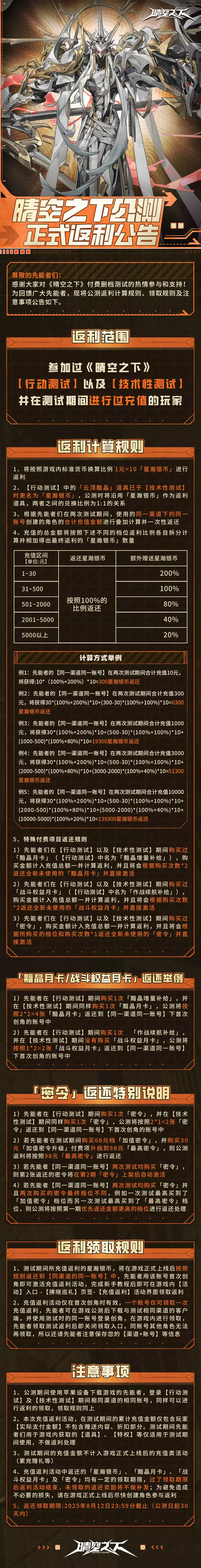 晴空之下公测正式返利公告