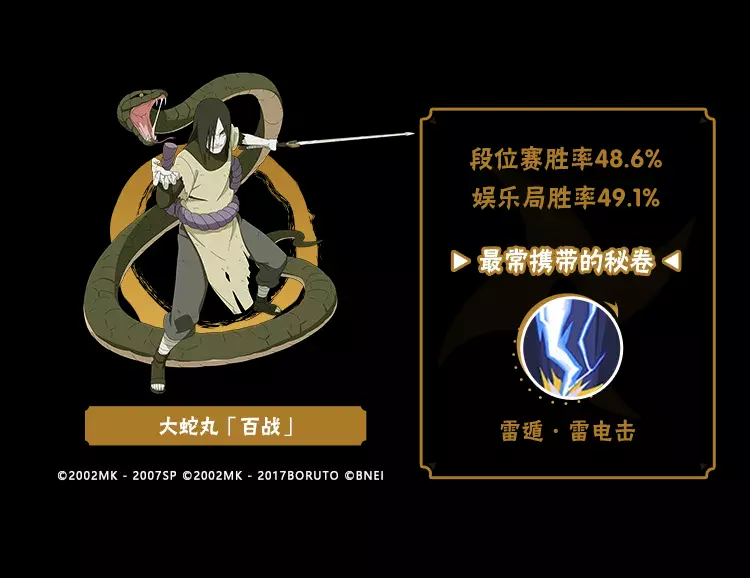 自选A忍免费送活动今日开启,学员们都选好心仪的忍者了吗?豚豚收集了一些忍者的段位赛数据供学员们参考~可用专属秘卷召唤罗生门,带来不同增益效果的大蛇丸「晓」,他的表现如何呢?