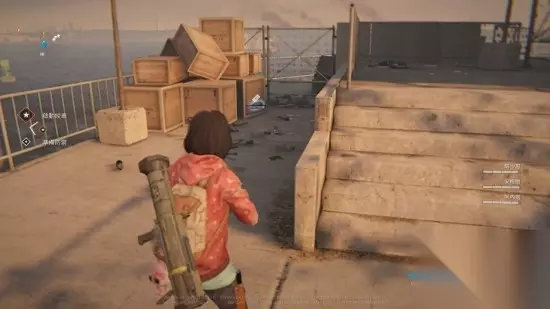 前往第二次尸潮前会见到垃圾堆,就躲在木箱后面。