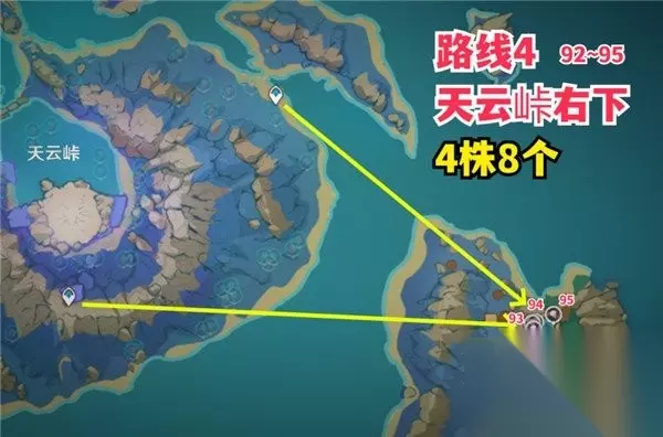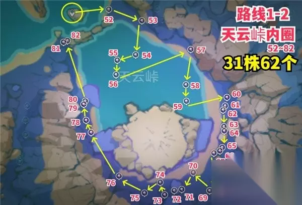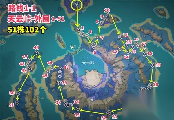 原神天云草实采集路线图文介绍一览 路线1-1 地点:天云峠外圈 数量:51株