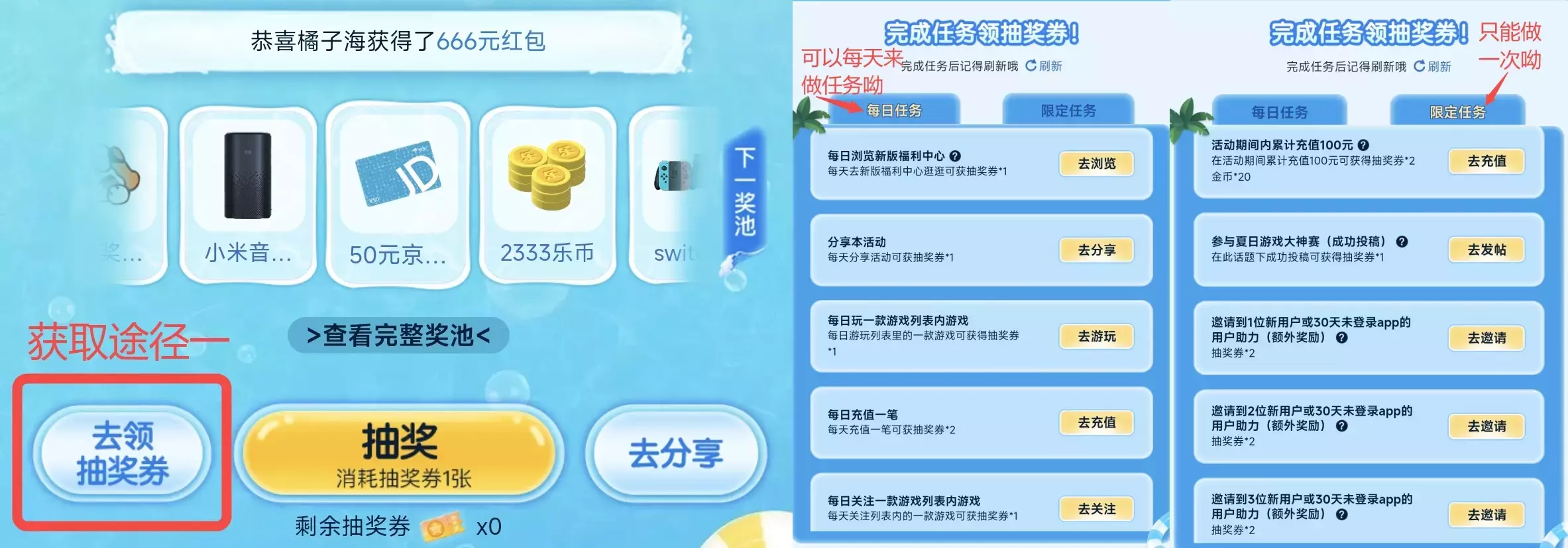 获取抽奖券的多个途径,为你一一道来~
