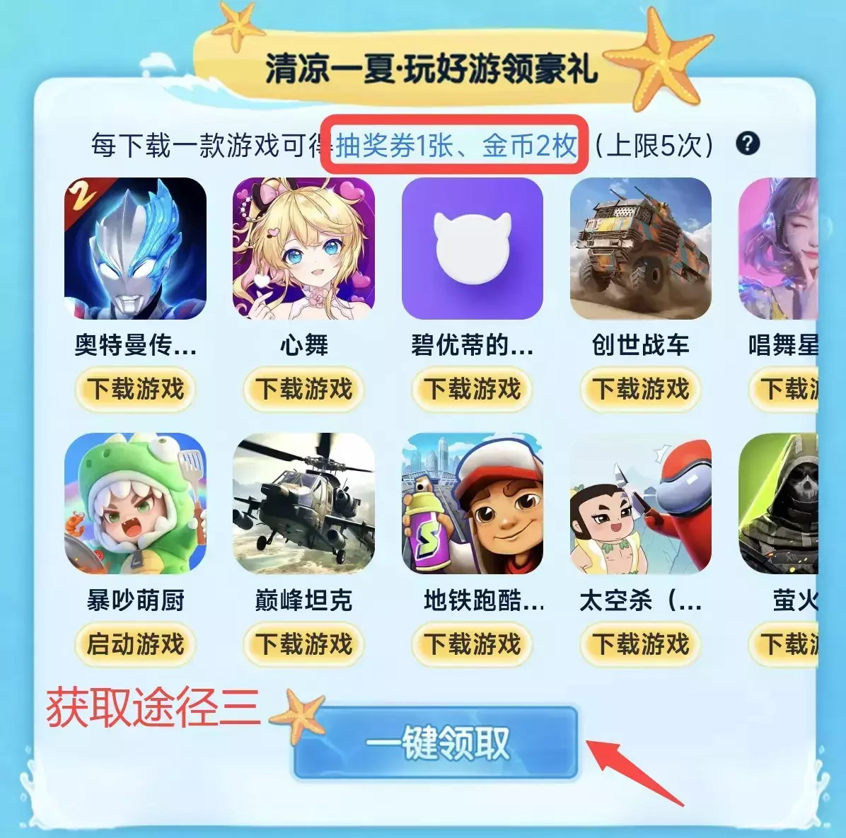 【参与“清凉一夏·玩好游领豪礼”模块】:通过本模块每完成一款游戏的下载,即可获得抽奖券*1+金币*2,玩到就是赚到!