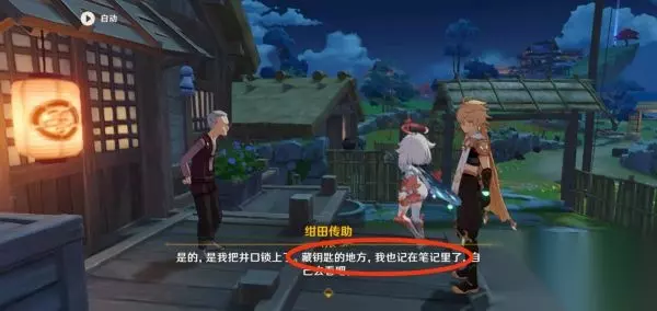 来到村长家后院的井这里用钥匙把井打开