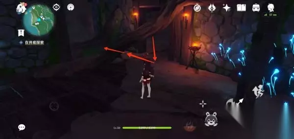 跳下来以后看到有石头块把洞口封住了 打碎石头进去