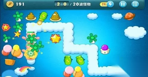 小编开始消灭第20波怪的时候,一不小心放走了2个小怪,不能完美过关了。这一关玩家只能建造瓶子炮塔,其它的炮塔只有摧毁障碍物才可获得。