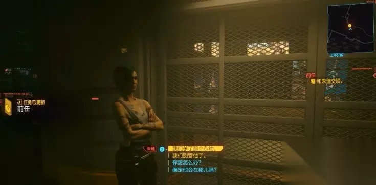 赛博朋克2077朱迪支线任务前任完成方法介绍 1.在清晨的时候到云顶露台与朱迪进行对话,在对话的过程当中,朱迪要你和她一起去找她的前任前田舞子,随后,我们会来到办公室和舞子对话,在对话的过程当中,我们会知道舞子虽然不敢得罪虎爪帮,但是会帮朱迪将木头人骗过来。