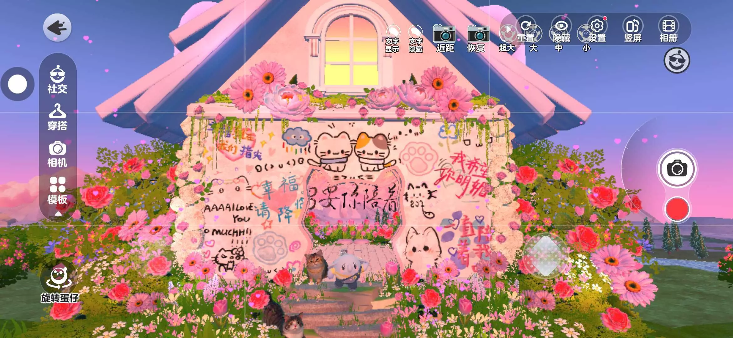 整张图来说,一共有三个打卡点,这里是被花包围的小猫,旁边还有一只大猫,他们怎么能这么萌啊,而且后面的心思还这么漂亮,简直就要被勾走了ʢ>🐽<ʡ主播们下次推图再见#申请精华 #雾唸的推图 #小n是大佬 #小N碎碎念 #唸唸爱妍妍