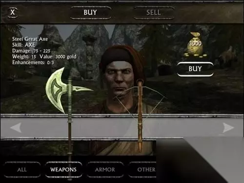 到了这里还可以买把大斧头。如果你只做第一个任务,使用这把斧头就足够了。对付洞里的浩克,一般都是一斧头杀一个,不过斧头的攻击频率有点慢。所以我们还是用剑吧。