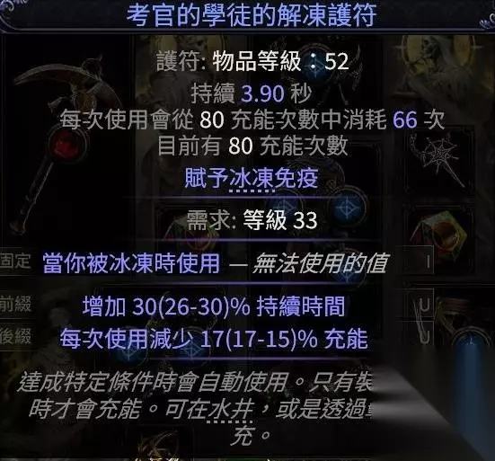 护符推荐免疫冰冻,词缀找增加持续时间和减少充能。