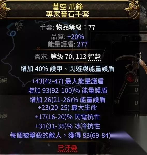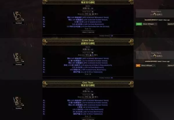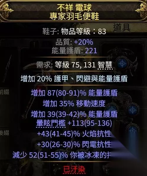 30%移速+150ES+抗性的鞋子,3E 不推荐保留鞋,要牺牲es和移速,尤其是移速,对清图体验影响极大。