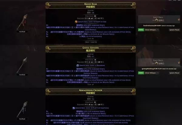高配权杖 我个人的权杖不算很好,提升空间挺大的,价值大概不到20d,没有友伤和攻速。