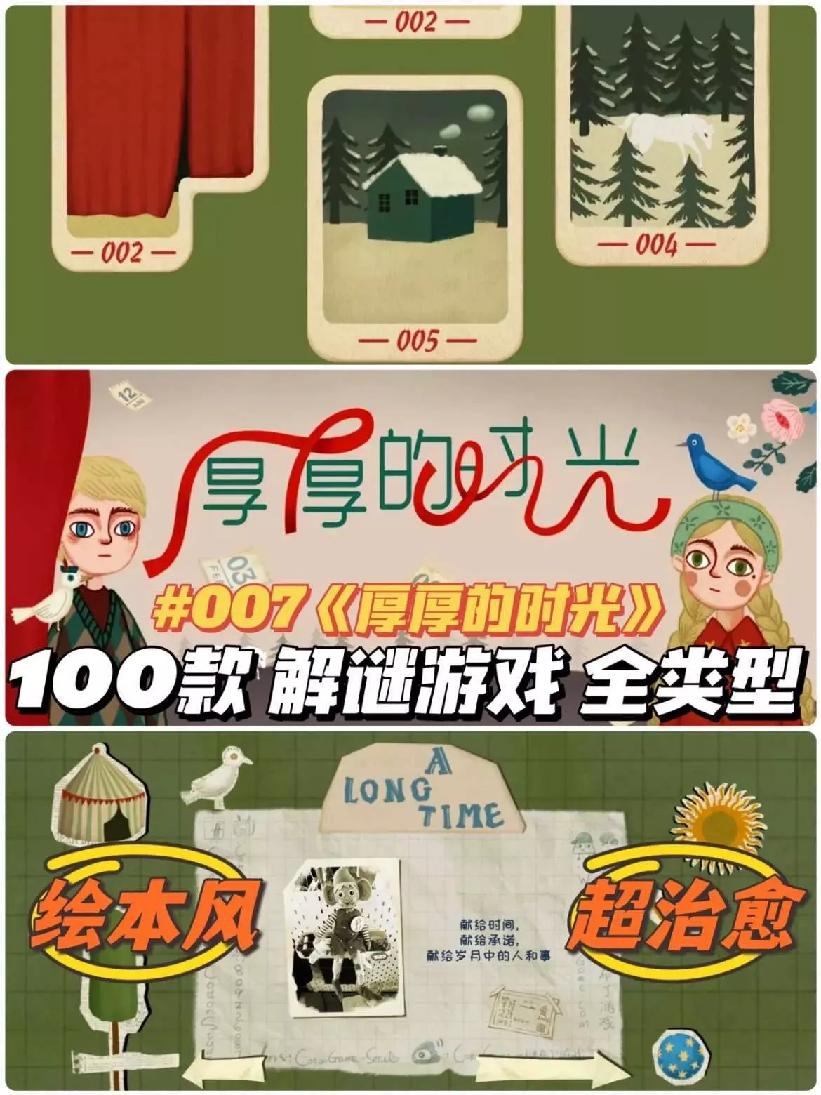 🎮解谜玩法很简单,移动照片让时间串联,绘本画风超好看,整体就是华容道,但故事和BGM都很棒,玩完有点悲伤有点凄凉❤️🩹