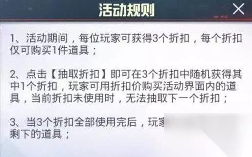 划重点:幸运空投中的折扣,一共可以使用三次 如果你看懂了规则,可以使用“田忌赛马”的方式,先使用9折的,获取最便宜皮肤,再使用7折的,获取最贵的皮肤。 这样,我们可以把自己的利益达到最大化…… 好啦,以上就是和平精英幸运空投怎么触发?幸运空投方式介绍的全部内容了。