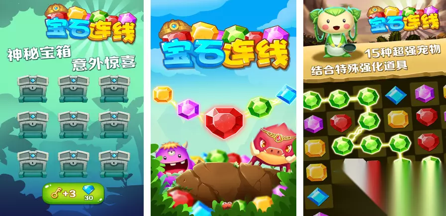 将相同的两张卡片,通过不超过三根直线的连接即可消除,规则简明扼要,易于掌握。游戏进程迅速,画面明亮讨喜,特别适合心思细腻的玩家。引入丰富多样的道具系统与公共竞技模式,极大地增强了游戏的对抗性,精心设计的多种地图场景,为玩家提供了在不同游戏阶段都能遇到新挑战的机会。 高速下载 普通下载 优先233乐园APP下载 5、《宝石连线》