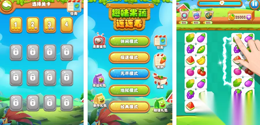 布满了诸多绚烂多彩的宝石,玩家需觅出同色系宝石进行串连,顺利将它们相接便能达成消除,一次性消除的宝石数目愈多,获取的奖赏也愈发丰厚。玩家尚可运用游戏内的辅助工具来助力消除,面对棘手的关卡时,这些道具能助力迅速通关,共同穿越宝石的迷宫,晋升为璀璨的宝石大师。 高速下载 普通下载 优先233乐园APP下载 6、《趣味果蔬连连看》