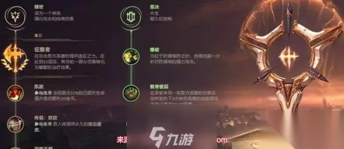 英雄联盟剑魔符文搭配推荐 1、征服者流:征服者+凯旋+韧性+坚毅不倒。 目的:追求伤害输出,适合侵略性打法。 特点:通过多段技能轻松叠加征服者,打出高额伤害,确保快速击败脆皮英雄。 副系:选择眼球收集器进一步增强输出,为一套技能消灭脆皮提供保障。 2、稳健流:精密+坚决。 目的:追求稳定的对线、扎实的发育。 特点:提供额外的坚决度和坚持性,让剑魔更稳定地面对上路对手。 3、持久流:精密+启迪。 目的:增强持续作战能力。 特点:确保剑魔在持续战斗中的生存能力和能量管理。