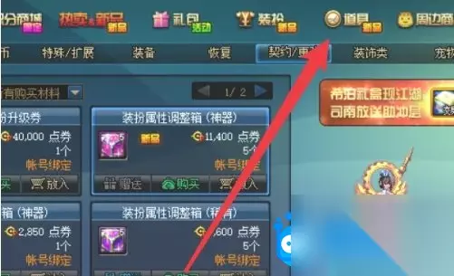 2、接着在商城详情页,点击上方的道具功能;