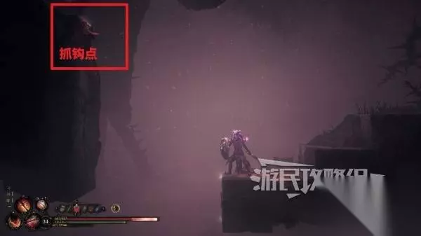 部分抓钩点时垂直于墙面的,需要持续按住闪避键攀墙。