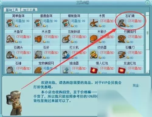 2.在城镇中找到工具小贩点开购买需要的矿锄