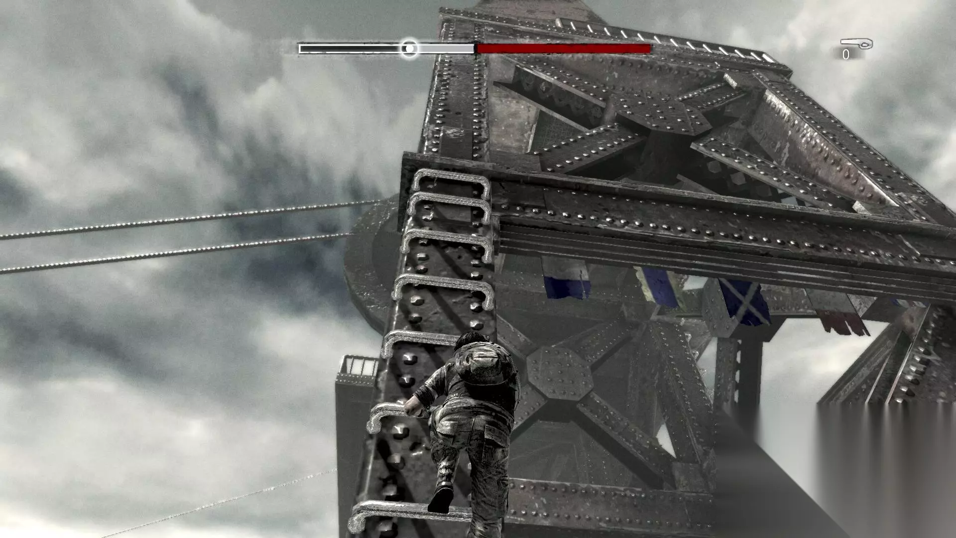 神作《美国末日》 游戏方式 《我还活着》的游戏方式很简单,其系统设定可以简要分为两部分:动作与战斗。 1.动作 本作的动作系统脱胎于《波斯王子》,然而却比《波斯王子》系列限制更多。由于主角亚当所在的城市发生了大地震,整个城市都变得破败不堪,到处都是残垣断壁,所以玩家不得不控制亚当在废墟中上下攀爬、跳跃来找到通路。不过亚当只是一个普通人,他无论是跑步、攀爬还是跳跃都会消耗大量体力,而游戏中有很多需要一口气爬到目的地的场景,一旦一步走错就会因为体力耗尽而无法达到终点,最终结果只能是跌落深渊。