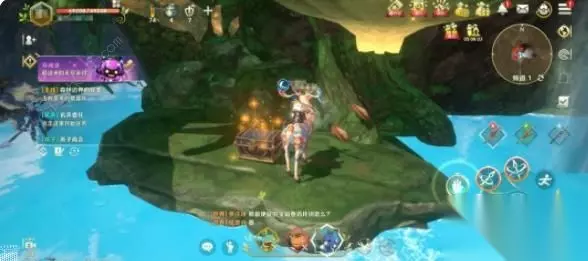 在宁静森林传送点处,一直往地图上方走来到无名洞穴,淹没水中的箱子就在水潭一侧突起的岩石平台上,稍微拉开距离跳跃就能来到平台上。 宝箱――遗迹碎片的箱子