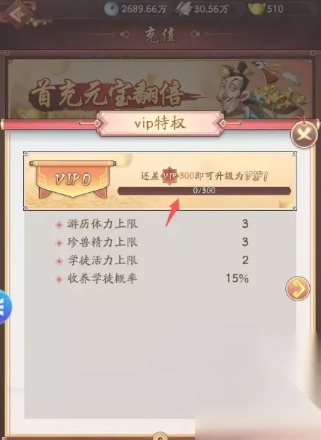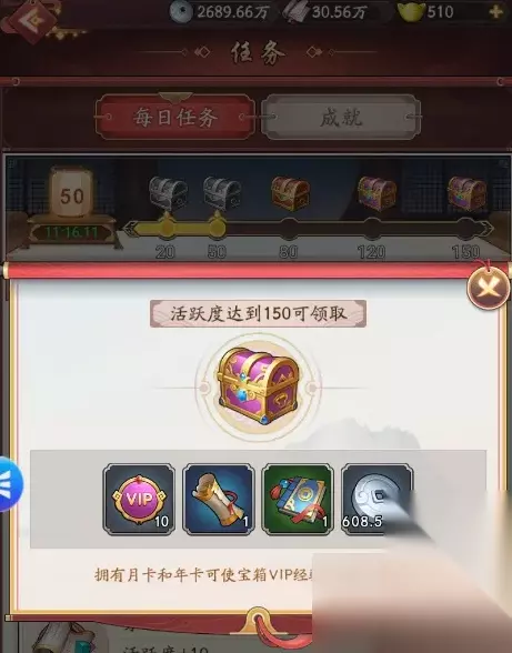 3、VIP经验可以通过充值和活跃度宝箱获得。