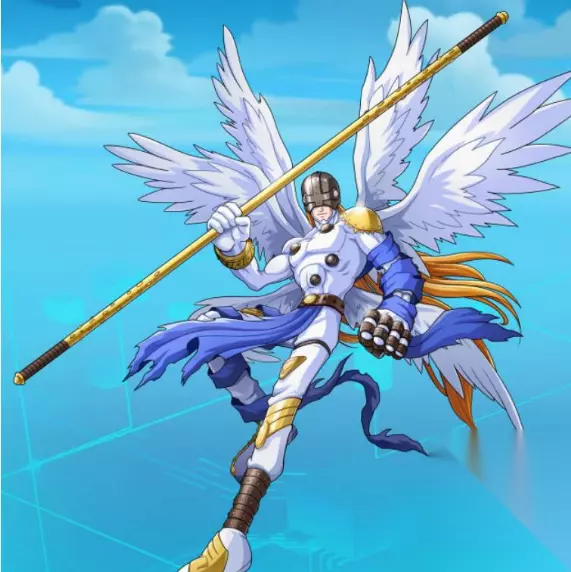 2、成熟期-天使兽 长有闪耀光芒的六片翅膀,身着神圣的纯白之衣的天使数码宝贝。 必杀技:用闪耀金色光芒的拳头攻击对方的「天堂之拳」。