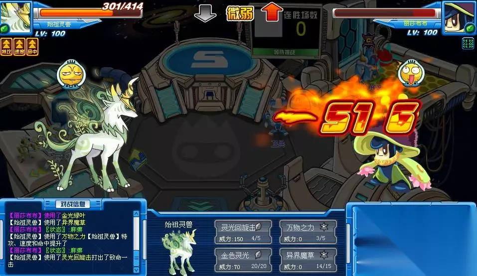 魔草麻痹控场,雷击主攻消灭力量,自然洗礼增加暴击2回合,草系吸血技能,三项万能(攻击、生命、速度+1增强),气场150草型主攻大招。始祖灵兽的武魂一出场,基本上就占据了赛尔号所有的主流机制,根本看不出武魂的弱点在哪里。