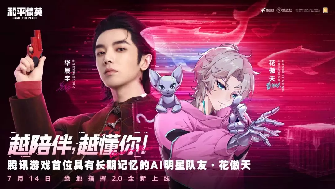 就现在,锁定《和平精英》! 7月14日,与集明星人设、长期记忆、强力上分于一身的AI队友“花傲天”并肩作战,开启属于你们的战场新传奇!当然!不止是AI“花傲天”,全新升级的“绝地指挥2.0”模式中,所有AI队友都将同样具备长期记忆能力,对局战绩计入经典段位分,并支持营地好友互通,带来超凡竞技体验。