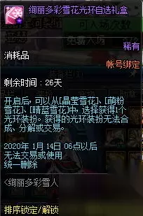 dnf晶莹雪花光环属性一览: ●无期限普通装扮 ●全职业Lv1以上可穿戴 ●不可合成、分解、交易 ●无属性;无瞬间移动功能;无徽章镶嵌栏 DNF2020活动 欲望之塔
