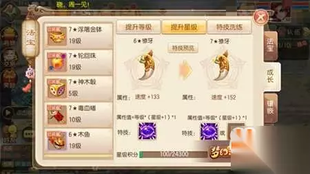 首先大家都知道法宝不论是在提升等级时还是在提升星级时都会获得固定的属性加成,从属性值的加成公式中玩家还可以看出等级与星级间存在影响,所以在给法宝进行提升时需保证等级和星级的同步性,不然很难得到理想效果:以獠牙为例,一件19级两星的獠牙可以提升57点速度,而一件10级五星的獠牙却能带来60点速度,并且升级19级两星的法宝成本要远高于10级五星法宝,其中的效果差距相信玩家可以感受出来。