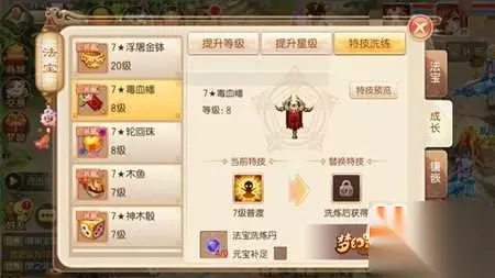 最后要说的一点就是关于已装备法宝不要轻易替换,相信很多玩家在给法宝进行提升时会出现低星素材拥有好特技的情况(诸如嗜血幡出了普渡技能),此时玩家不要盲目将好特技法宝换上,因为法宝的等级并不会像启灵那样得到继承,所以玩家需要算算究竟是给法宝洗练特技花费高还是给将新法宝提升至原有等级花费高。 如转载涉及版权等问题,请作者与我司联系,我司将在第一时间删除或支付稿酬。
