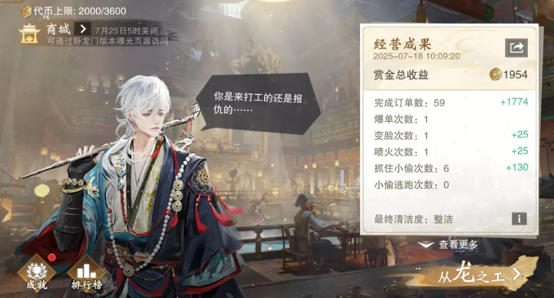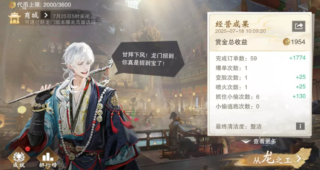 探寻众多谜团的同时,“卧龙门”专属打工玩法——“从龙之工”也趣味开启!经营茶馆来新单啦,给客人泡茶上茶,还能表演变脸喷火,路见不平抓几个小偷、清理垃圾也能有小惊喜!最强的打工皇帝,即将在龙门诞生!