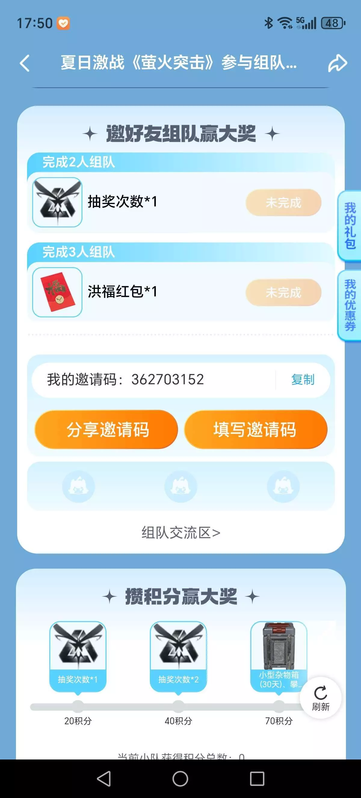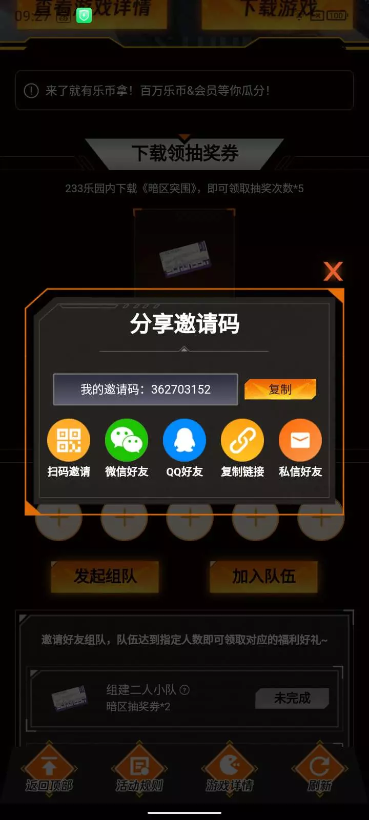 邀请好友组队