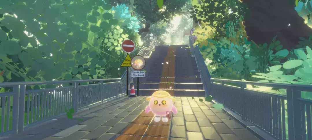 前边的小镜子上还可以看到小蛋仔的背影呢,简直超级可爱哇,走上台阶也是一个美美的打卡点哦,都超级美~🎐