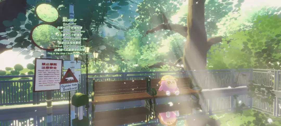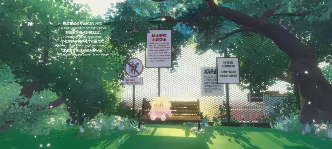 独属于校园的鲜活,长椅和小蛋仔们,光线也是超级有氛围感的呢,这里可以好多只小蛋仔一起拍照打卡哇~