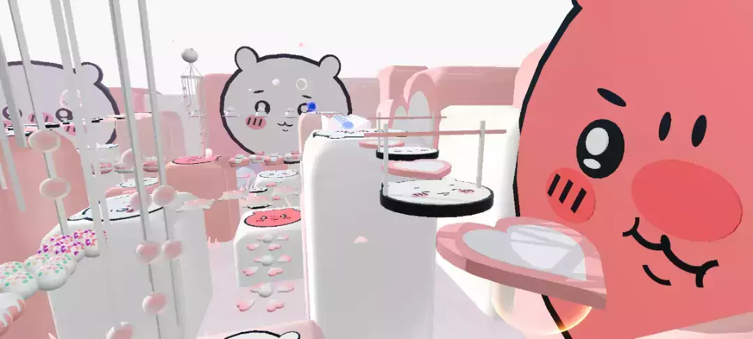 这里关卡是渐变色的哦,由粉变白的过程简直超美哇,前边第一个爱心上还有萌萌哒吉伊哦,前边还可以看到小蛋糕唉✨