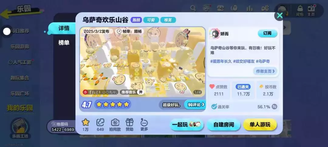 地图关卡也是超级简单嗒,所有关卡大概5~10分钟也是可以跑完滴,来到终点也可以和小小乌萨奇打卡哇,萌萌哒🥪