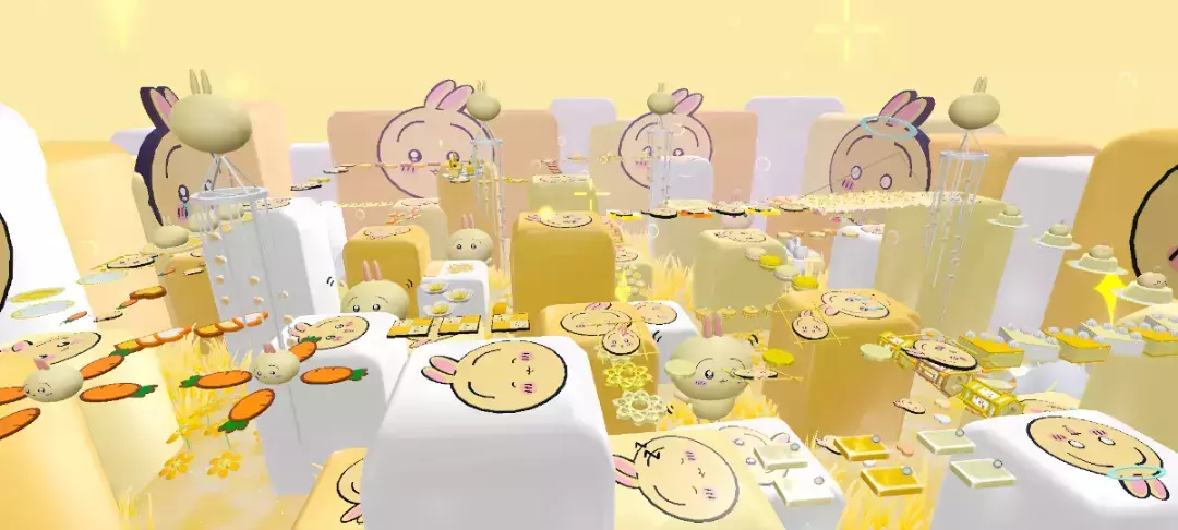 前边还可以看到一只萌萌的乌萨奇哎,周围也能看到超多小小乌萨奇,黄色系看起来就很治愈哇,超喜欢这个地图🥖