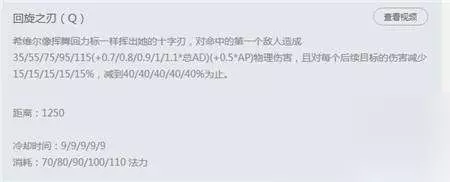 希维尔的核心输出技能,在后期装备出齐后非常的厉害,配合大招被动,可以加攻速。这个技能也可以用来清线,不过要注意的是在打防御塔的时候,会暗射到附近的小兵和英雄身上,小心不要拉防御塔的仇恨。