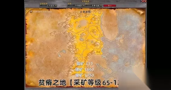 65-125级 贫瘠之地,65级开始挖锡矿,75级开始可以挖银矿。