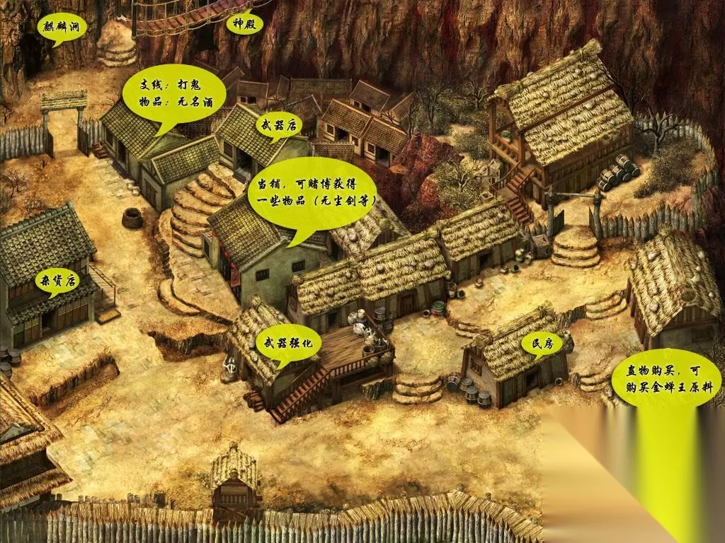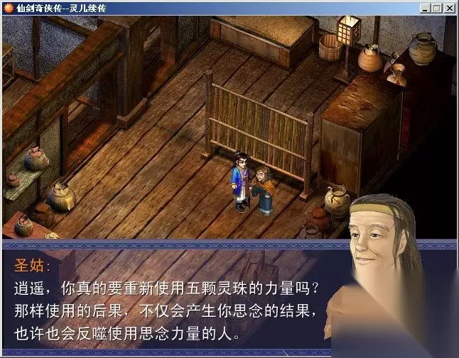 御剑前往圣姑住所 二、在圣姑住所,圣姑说她也感受到了灵力,齐聚五灵珠的力量,可能灵儿有再生的希望。逍遥决心让灵儿复活,于是圣姑将她所保存的几颗灵珠交给逍遥,让逍遥去找火灵珠和水评注。流程提示:1、前往蜀山自己的房间,拿水灵珠2、从圣姑家后门出去,走过草地,来到南诏国。南诏国西北角有一个山洞,在最里面可以遇到麒麟大叔,击败后获得火灵珠3、拿着两颗灵珠回去找圣姑战斗指南:1、普通的敌人,基本上只要使用剑神、万剑诀、普通攻击交错组合即可击败。面对麒麟之前,可以用药把自己补满(或者先在洞外升一级补满),然后冲上去先来个酒神,后面坚持一下就行了。2、李逍遥不用刻意练级,遇到敌人只要躲避就行了。方法是见到敌人后不要害怕,往上冲,从敌人身边溜过去。习惯之后,躲过敌人的几率是很高的。其他指南:1、圣姑家门口有两个香蕉,这的香蕉似乎占有灵气,是所有药品中最好用的(命、气全满)。2、圣姑家外的树洞里面有一只强大的猩猩,看守着朱雀战袍。花絮:这只猩猩的攻击动画,是RMXP史上所有正式发布游戏中,第一个45度攻击动画,首次出现于《仙剑战棋DEMO》打法:这只猩猩攻击力不低,血也很多,但是有一个致命弱点:只会使用普通攻击。这样一来只要对自己使用仙风云体术,加强速度,猩猩的攻击超过一半都无法击中,接着用逍遥神剑或普通攻击击败之即可。3、南诏国的当铺,贩卖特殊的武器,如果有兴趣,建议购买一把剑试试运气。其中第一把剑有机会能获得最强剑◎无尘剑、七星剑精炼、越女剑精炼;第二把剑能获得盘龙剑、玄铁剑精炼、太极剑精炼。当铺是一个很特殊的场所,将东西卖给当铺之后,以后还能赎回来(为了玩家方便,当铺还是全国连锁的)。所以有不要的东西时,最好就是卖给当铺。4、南诏国有一个房间中,居住着一个老头,会请李逍遥帮忙打鬼。从他家宝箱进入,可以踩地雷式打鬼,打够20只左右,老头会送给逍遥礼物,其中比较重要的是龙泉剑和无名酒。打鬼的所在,内部可以见到罗刹鬼婆。这个家伙非常厉害,最好是战斗前灵气全满,一上来送他们一个酒神,达到小鬼,否则可能会被纠缠死。如果不用酒神其实也能打,用剑神 + 补血亦可。三个鬼最多一回合打1200,但是能恢复1500点,所以赢总是能赢的。战斗后学会鬼阴爪(鸡肋招数)。花絮:这个老头姓石,并且外貌也很像是苍老版的石长老,具体关系可以自己猜测一下。此外无名之酒——黑暗圣剑传说中增加灵力最大值的酒,这里也可以喝了增加真气400。不过如果打算走超级酒神策略,千万别喝! 5、金蝉王策略和超级酒神策略(注:这两种策略需要玩家有比较好的理财头脑,控制自己的现金流动,两种只能选择其一。金蝉王策略可以自己炼化金蝉王,至少能炼就10-20只,达到通关最高等级,无实际意义;超级酒神策略可以等级很低打倒任何敌人。)金蝉王策略:金蝉王可以在物品种用炼蛊皿炼成,材料是碧血蚕、食妖虫、两个圣灵符(总价格是1万元)。但是比较头疼的是南诏没有卖圣灵符的,整个游戏中也只有苏州有卖,所以这时注意省钱,不要乱花。超级酒神策略:一定要拿到支线的无名之酒,不要喝。注意拼命省钱。相关截图: