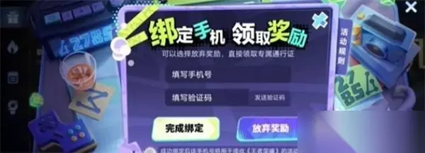 4、然后输入你的手机号码,完成绑定,领取对应的奖励;