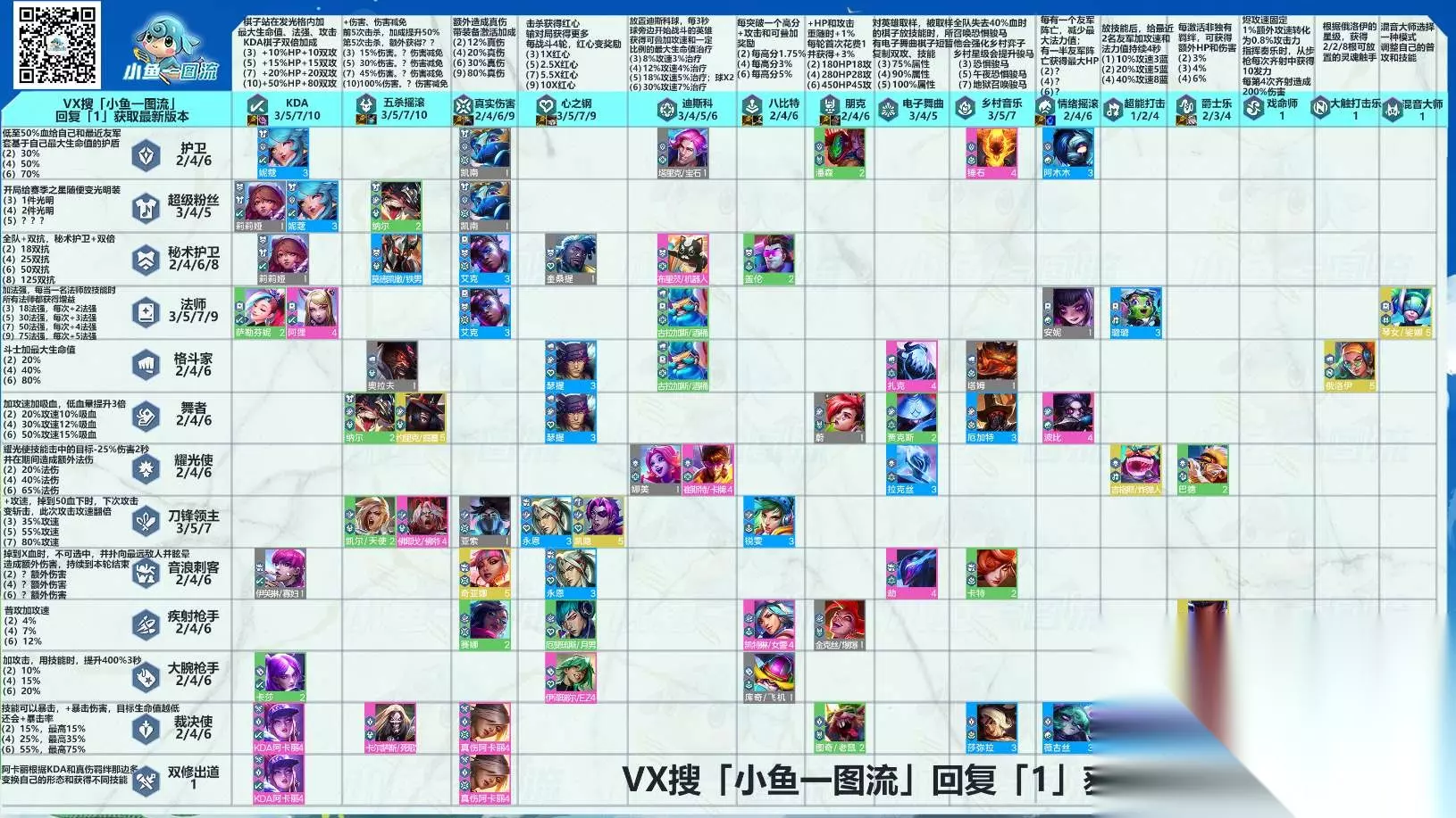 云顶之弈s10赛季已经正式公布了,新赛季主题为“音强争霸”,下面为大家整理了新赛季的羁绊以及弈子改动情况,想要了解最新版本的羁绊阵容、玩法思路的小伙伴可以参考以下的图文攻略。 云顶之弈s10羁绊全览图 1、云顶s10羁绊全览如下图所示:点击此处可以查看高清大图>>>