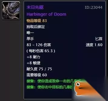 迈克斯纳之牙,人送外号“迈牙”,出自NAXX蜘蛛区boss,优点在于秒伤高,缺点在于没有暴击。 第三名:末日先驱